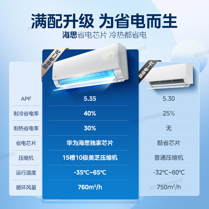 美的空调酷省电二代大1.5匹1P新一级能效变频省电挂机官方旗舰店