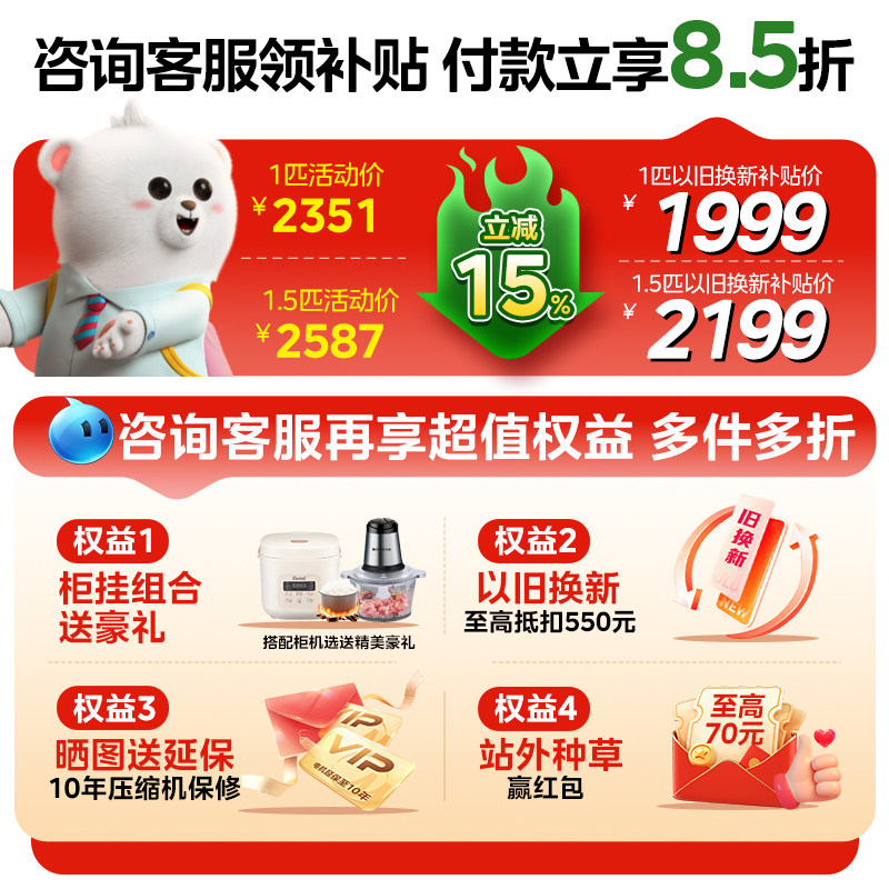 咨询客服更优惠 美的一级变频节能空调