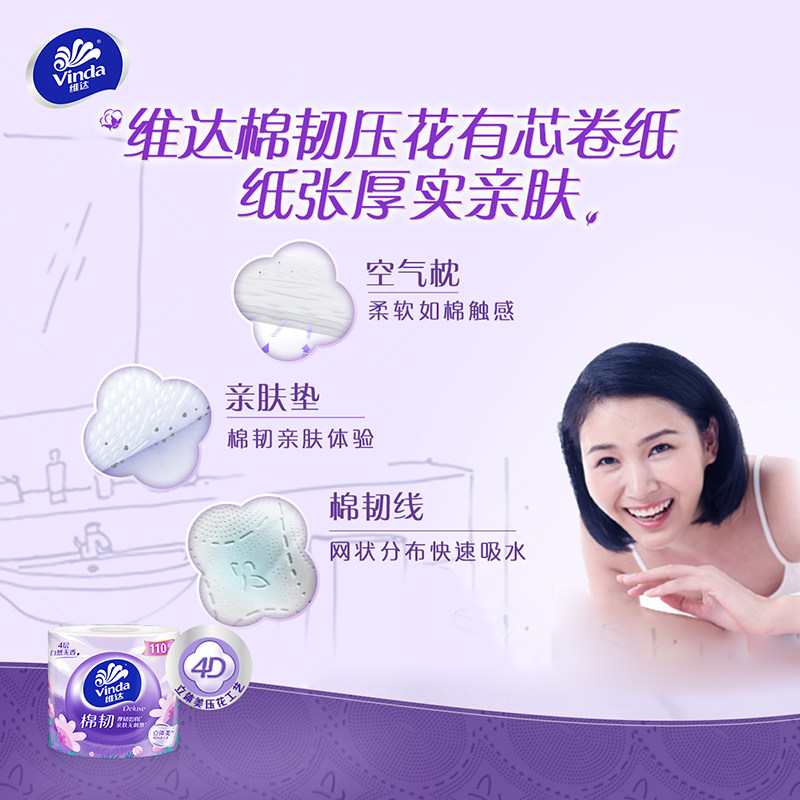 维达细韧无芯卷纸4层家庭厕纸学生宿舍手纸卫生纸巾实惠实心24卷