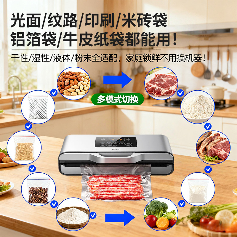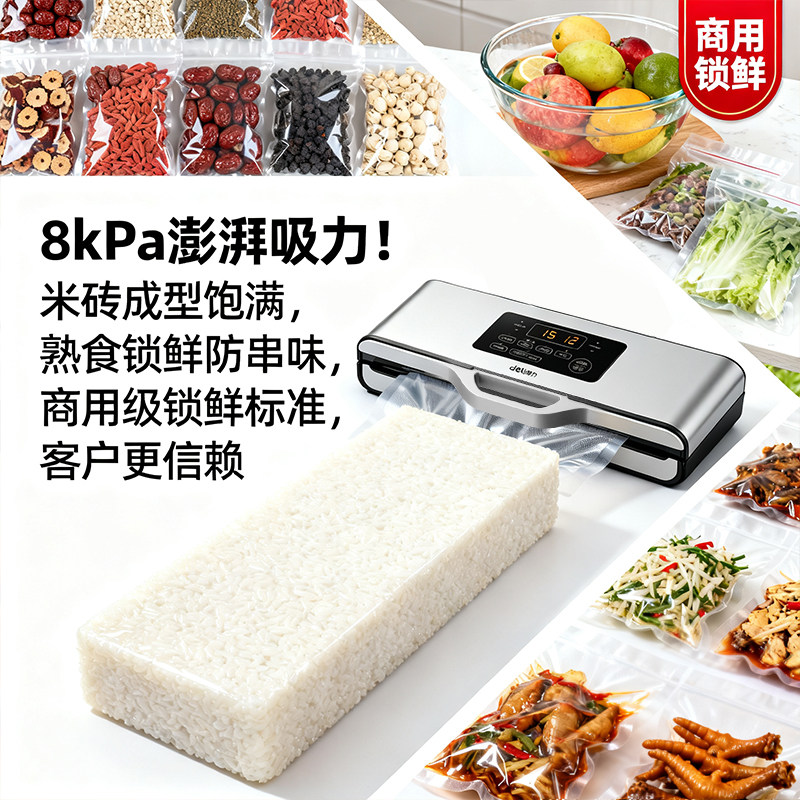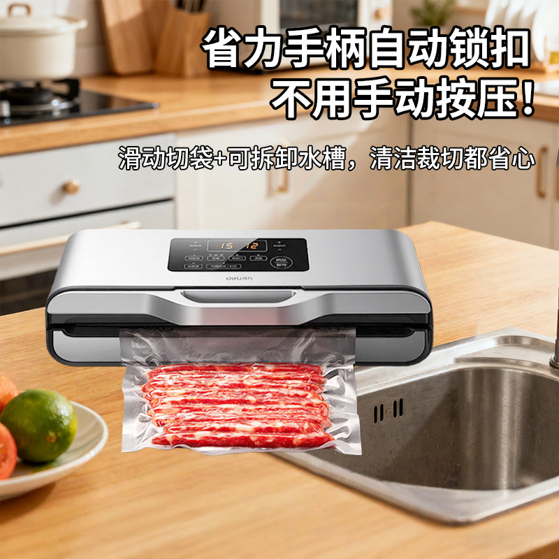 得力新款真空封口机商用抽光面袋米砖袋不挑袋真空包全自动抽液体食品保鲜真空包装机加宽大吸力不挑袋真空机