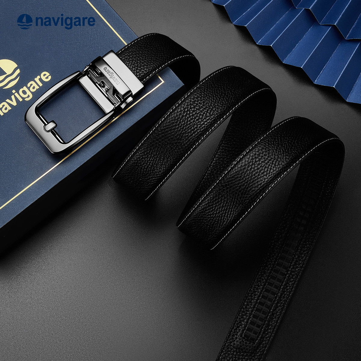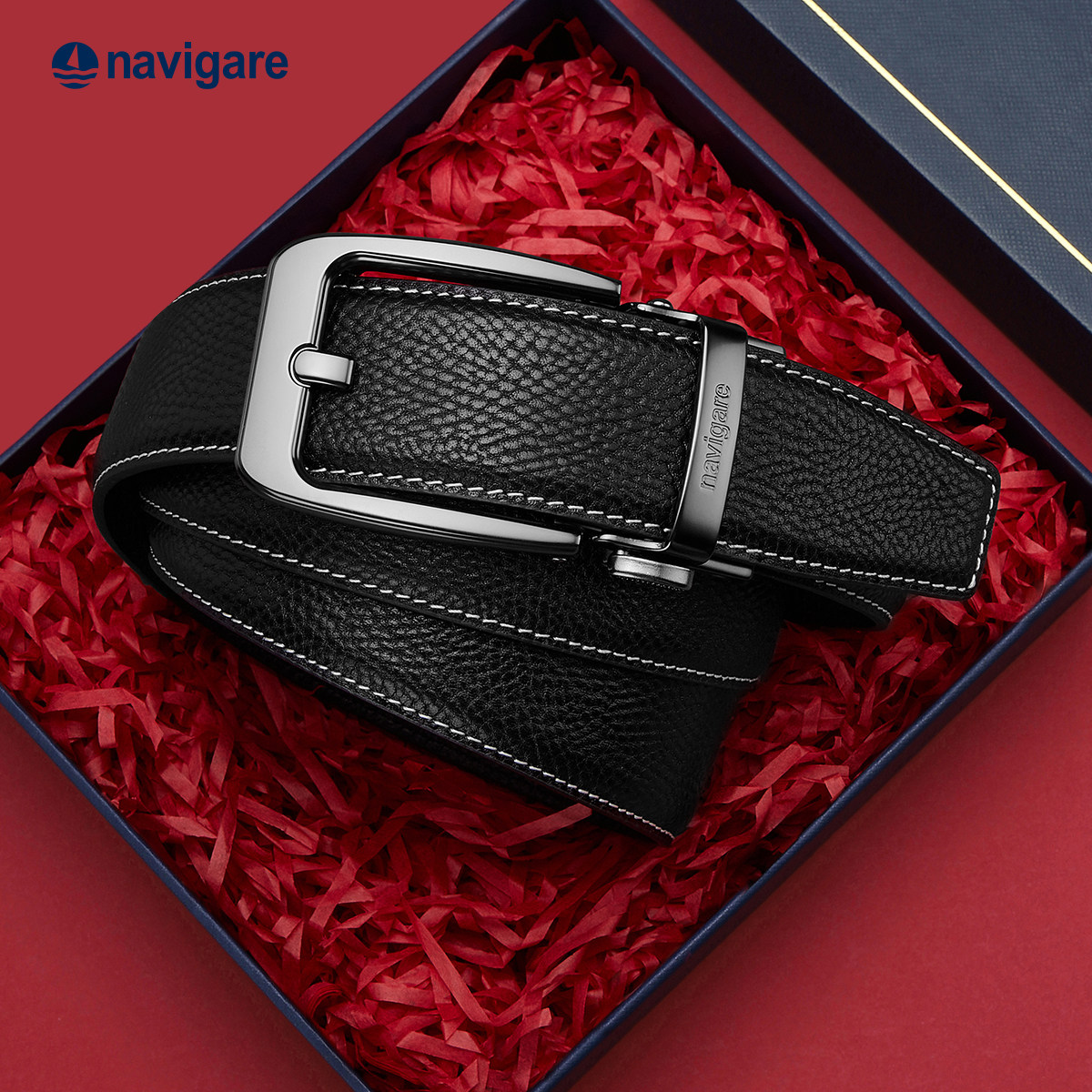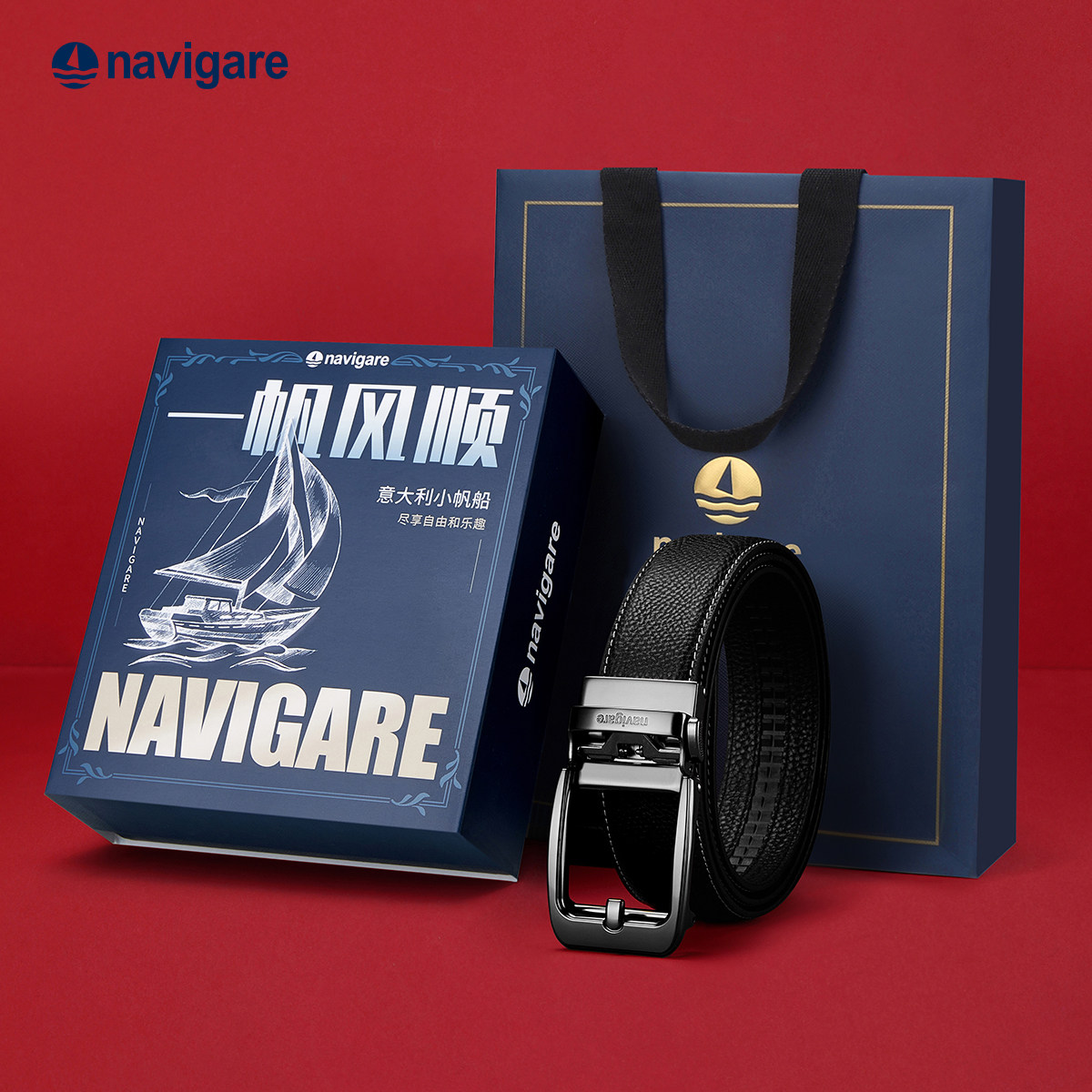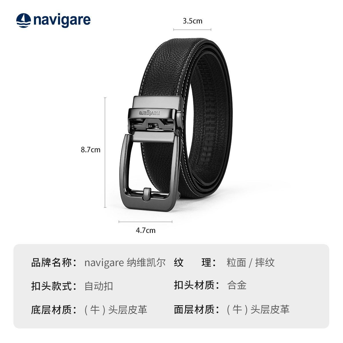Navigare纳维凯尔意大利小帆船男真皮腰带自动扣男士头层牛皮皮带