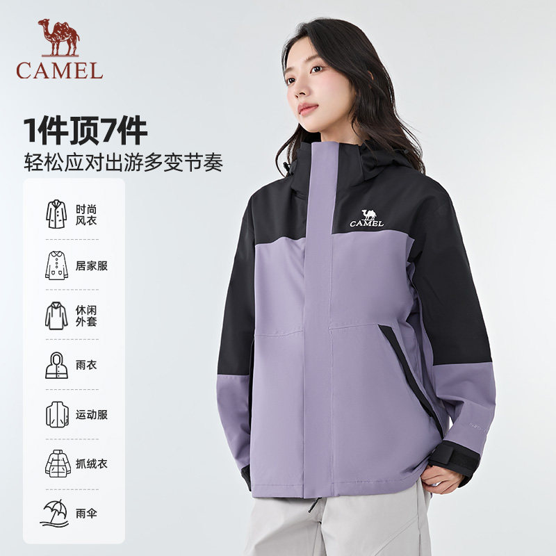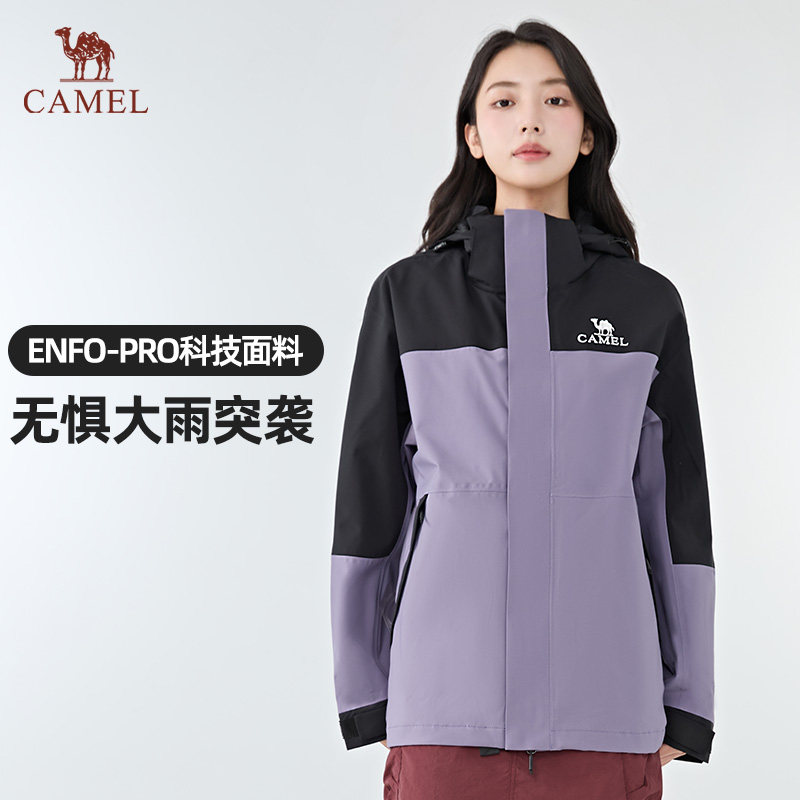 骆驼户外紫玫红色冲锋衣女暴雨防水防风外套男三合一加厚款登山服