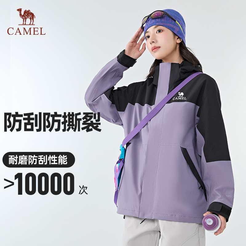 Camel骆驼户外冲锋衣三合一男女同款春秋加绒外套防风防水登山服