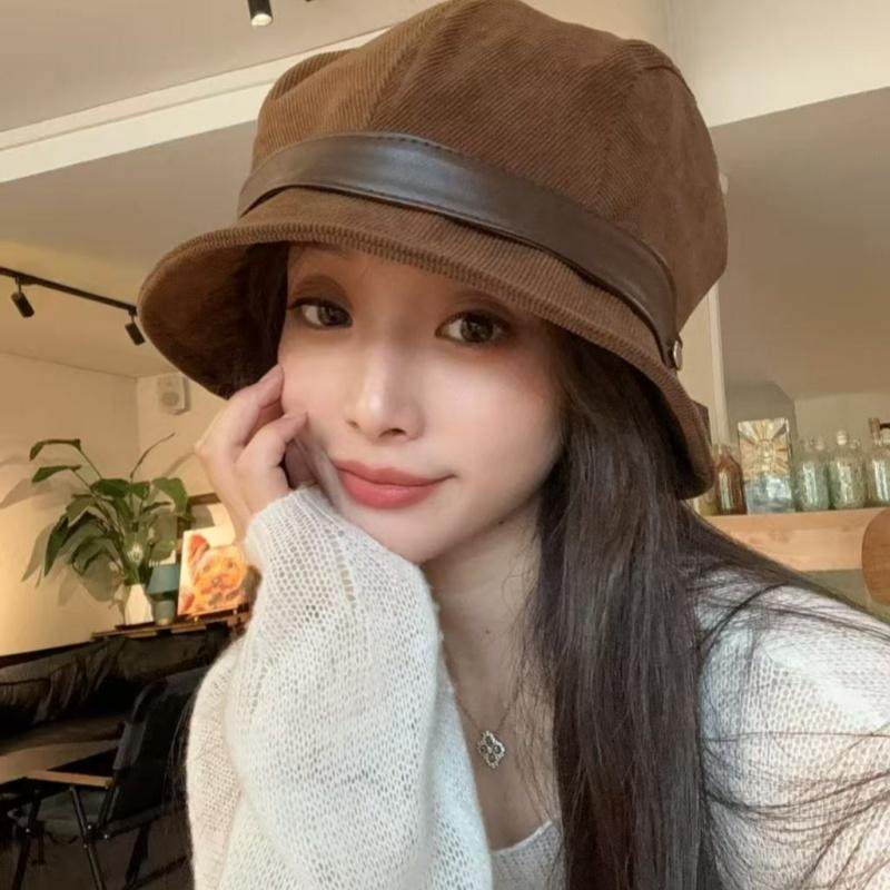 韩系氛围感渔夫帽子女秋冬天灯芯绒小礼帽女时尚休闲逛街一帽多戴