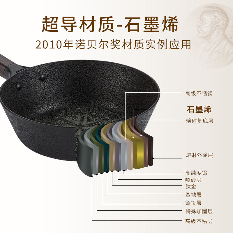 德国三头鹰无涂层钛锅不粘锅电磁炉燃气纯钛炒锅多功能家用炒菜锅