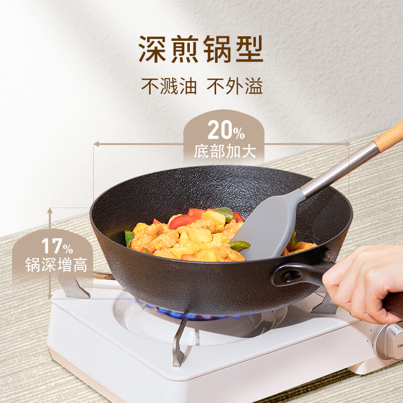 炊大皇无氟涂层不粘锅炒锅家用聚油不沾锅燃气电磁炉用钛锅炒菜锅
