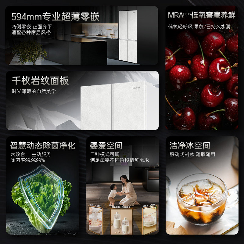 【526十字款】容声516L双净双系统十字双开四门家用无霜嵌入冰箱