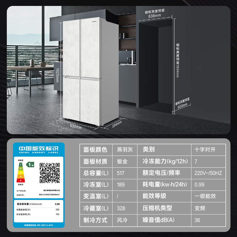 以旧换新卡萨帝517L制冰超薄零嵌入式一级四门风冷无霜家用电冰箱