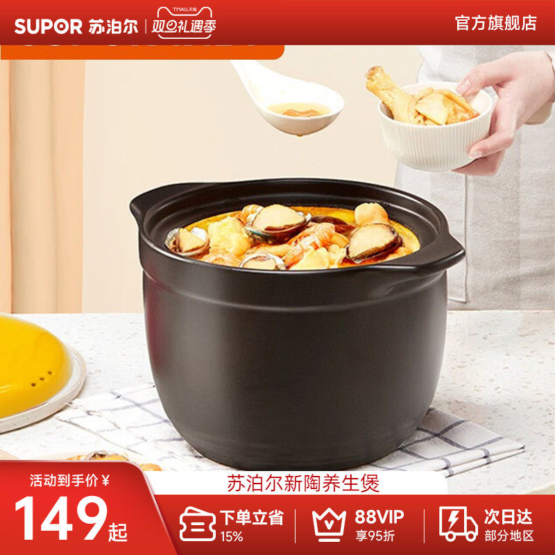 苏泊尔砂锅陶瓷煲耐高温干烧不易裂陶瓷锅炖锅家用燃气煲仔饭锅