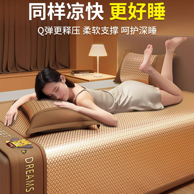 夏季凉席冰丝藤席家用双人床可折叠空调草席子老式冬夏两用天然软