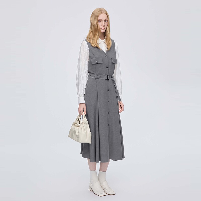 BANANA CICI2026年春季新款荷叶边V领针织衫/连衣裙