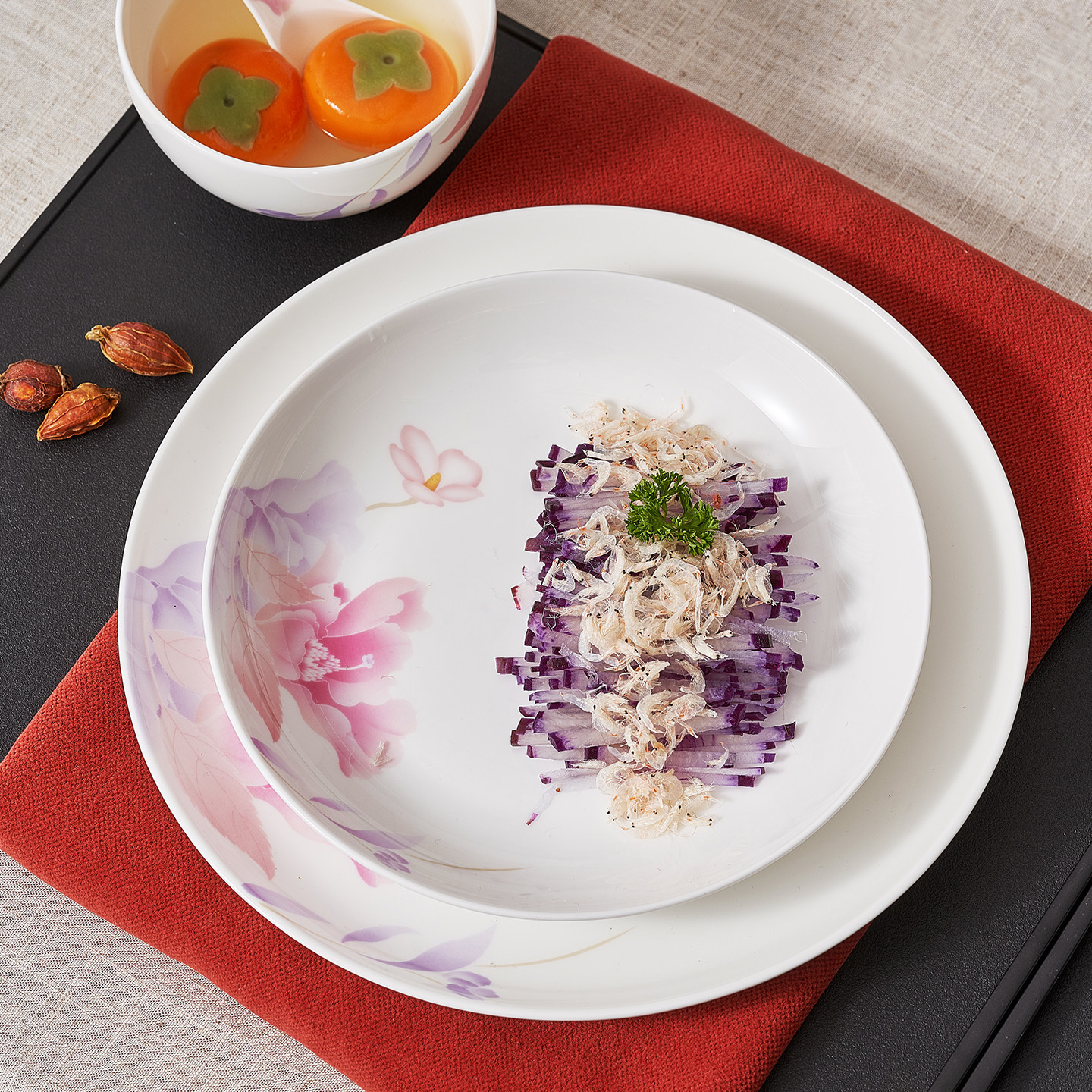 华光国瓷 骨瓷餐具单品 健康釉中彩家用中式 抗菌碗盘碟 花好月圆