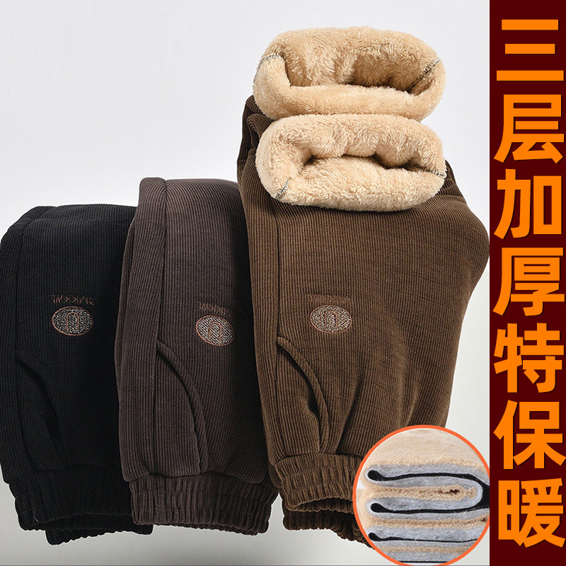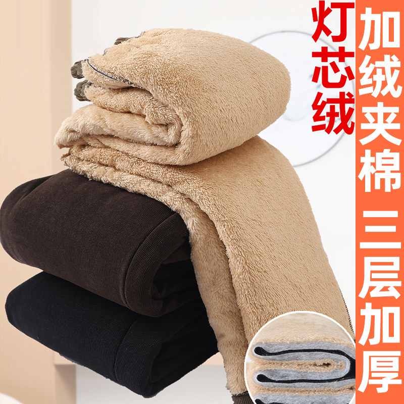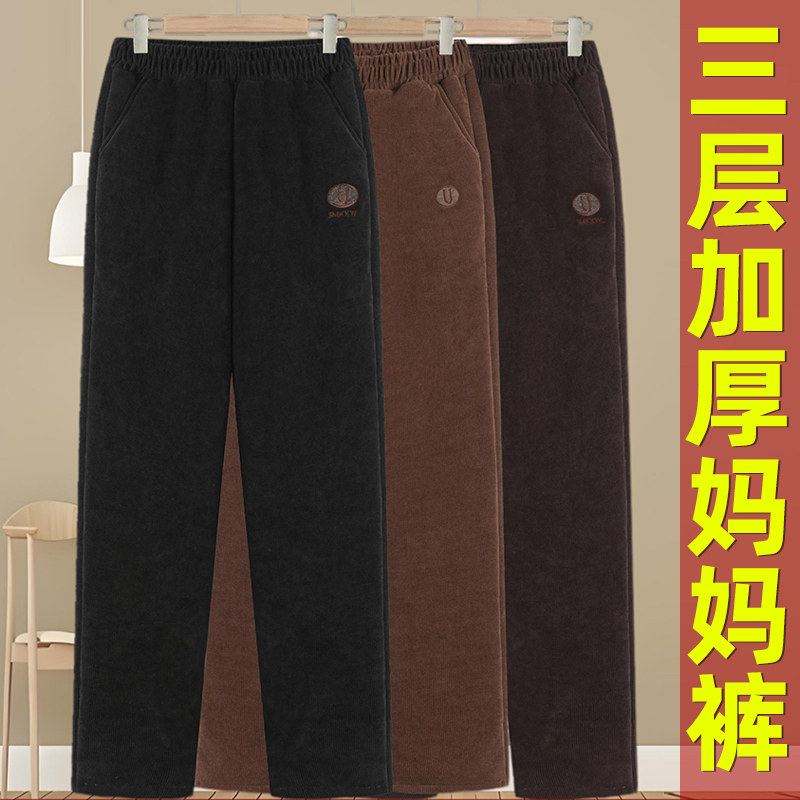 妈妈冬季裤子加绒加厚中老年大码女裤秋冬高腰直筒宽松灯芯绒棉裤