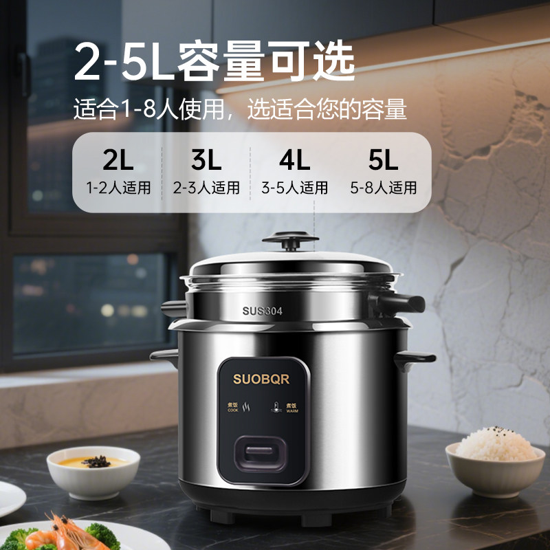 苏泊电饭煲新款家用0涂层食品级带蒸笼不锈钢1-10人老式电饭锅