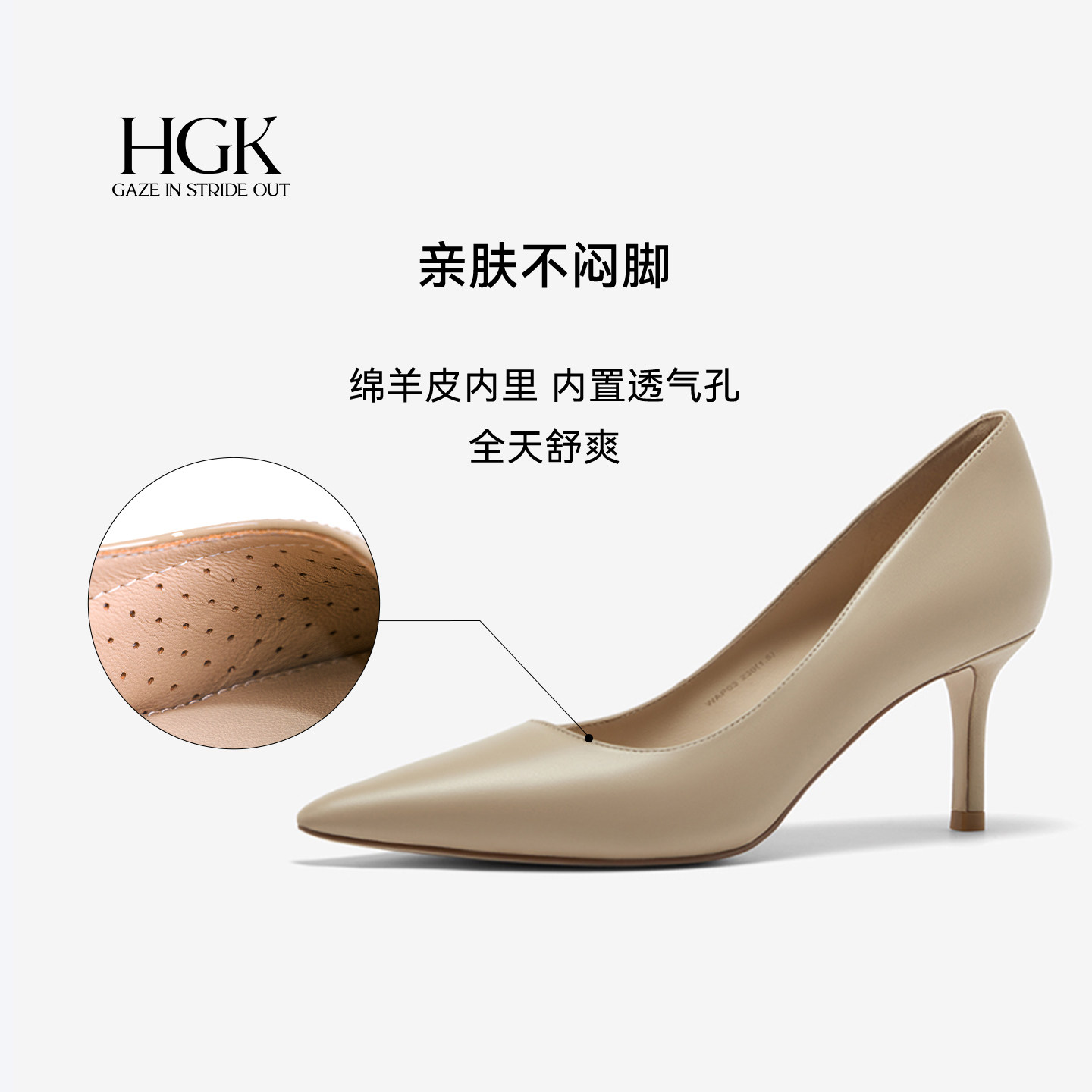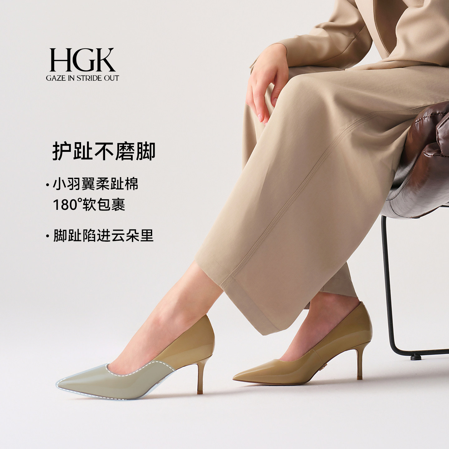 HGK小羽翼 法式尖头气质裸色高跟鞋轻奢漆皮羊皮舒适通勤浅口单鞋