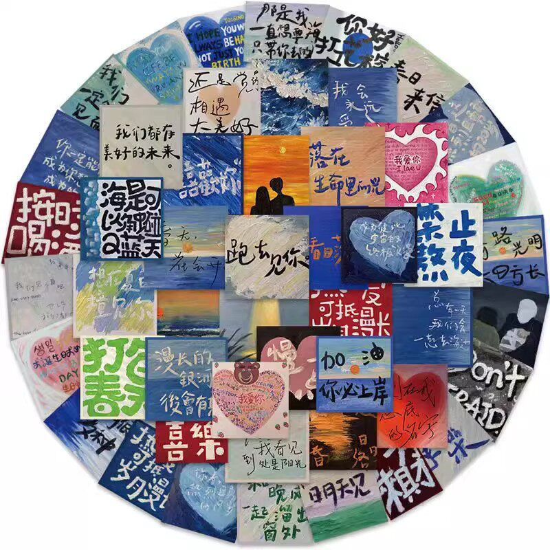 50张丙烯画贴纸浪漫治愈文字高颜值ins风小清新文艺手账DIY粘贴画