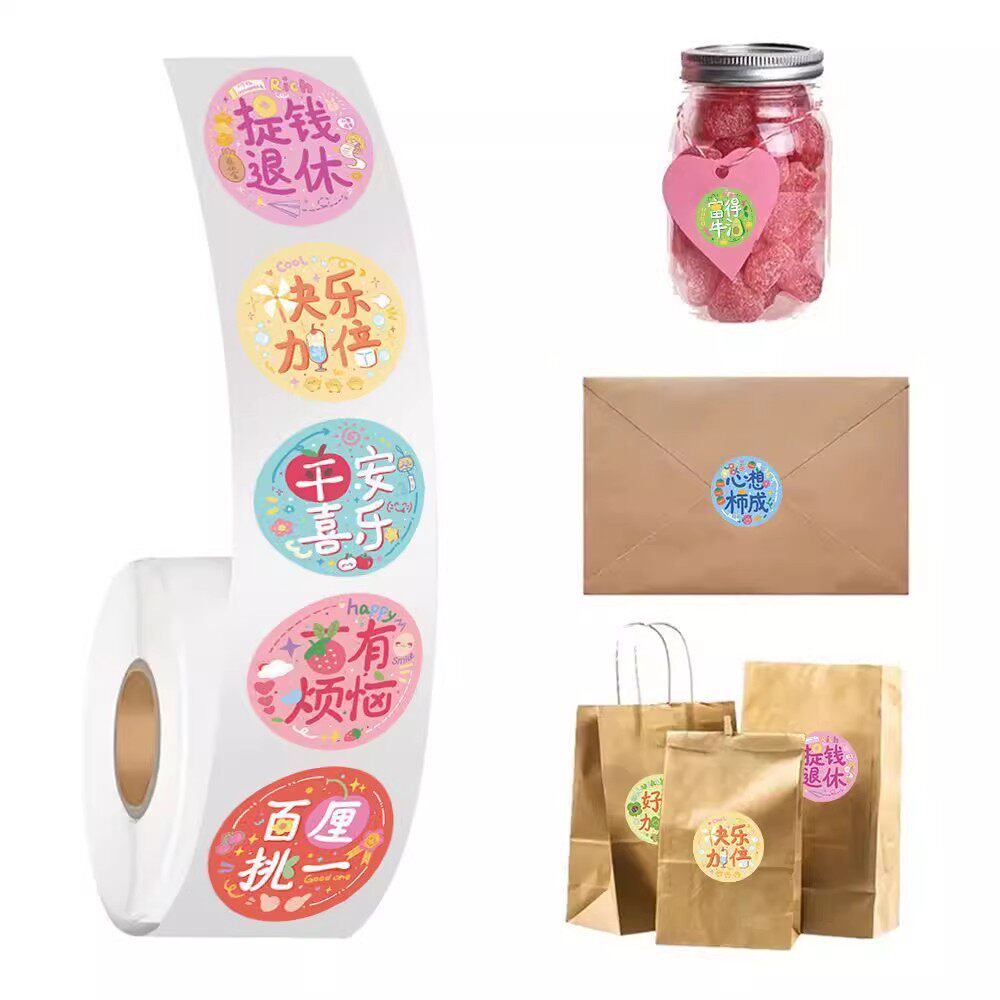 【大图释官方授权】1000贴卡通谐音梗祝福语ins高颜值小清新幸运可爱贴卷卷贴水果创意文字装饰贴纸水杯贴画