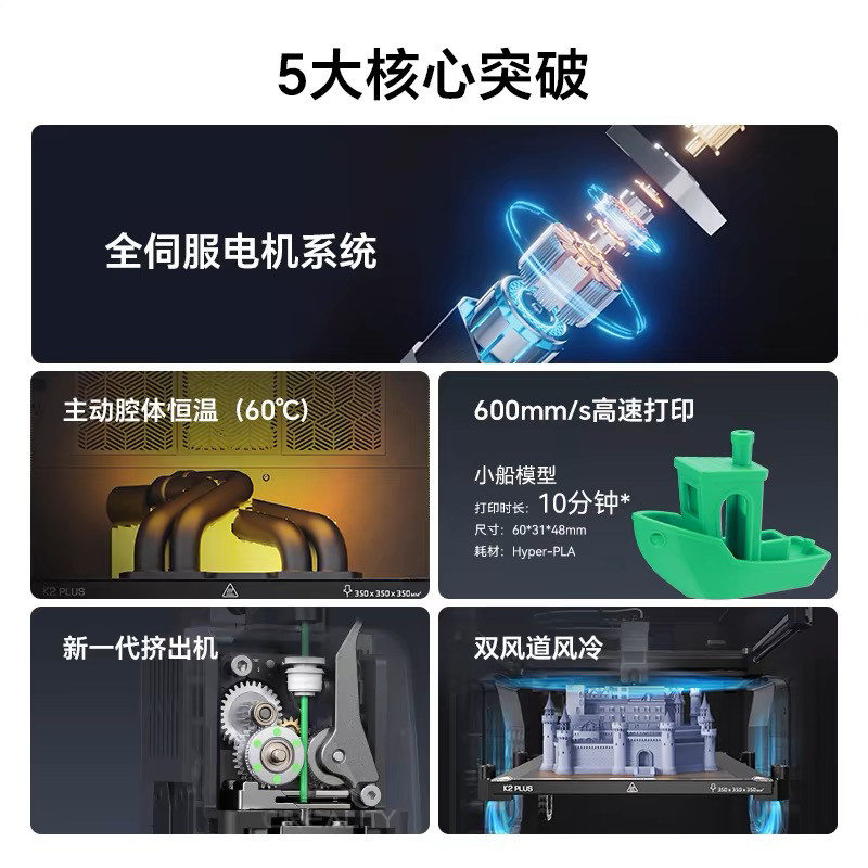 创想三维多色3D打印机家用K2 Plus桌面级大尺寸高速打印伺服电机