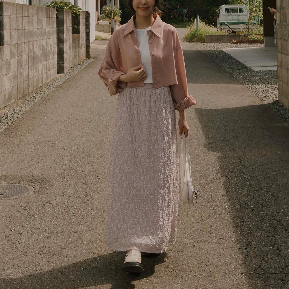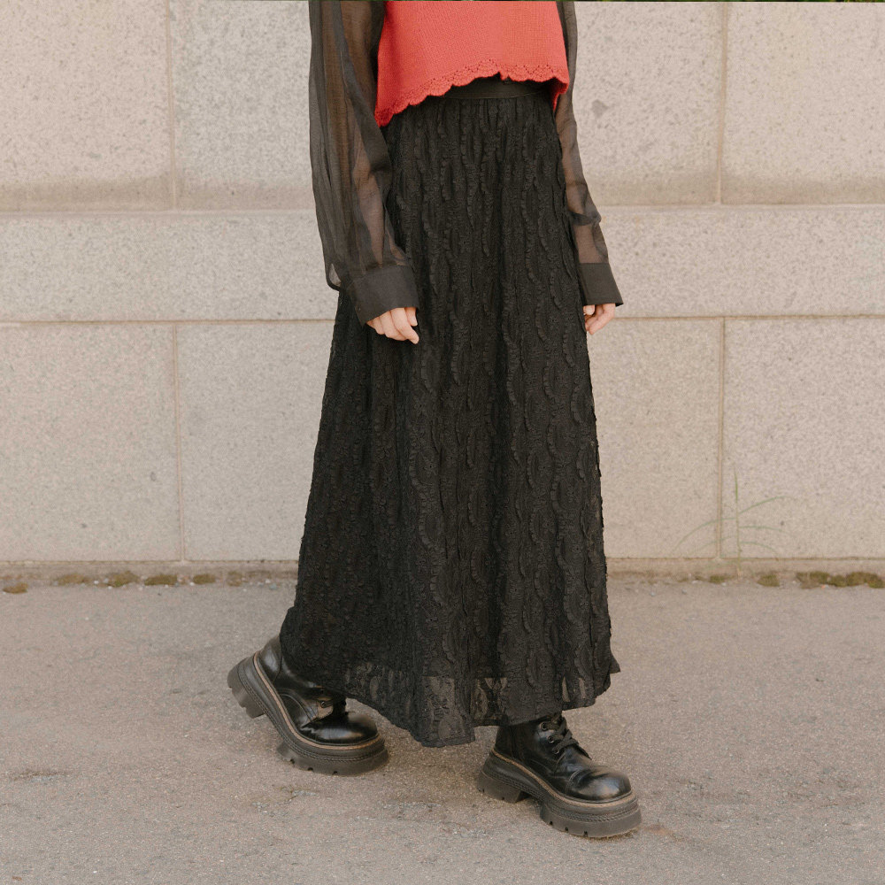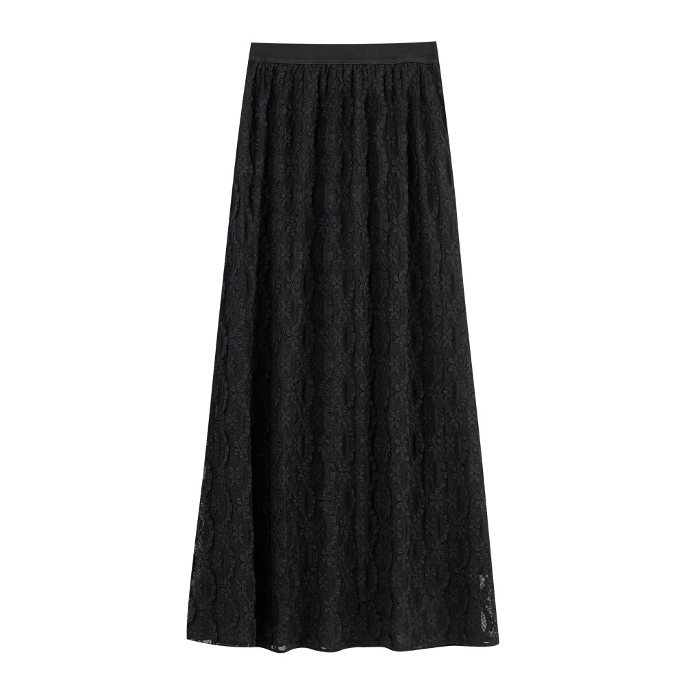 QUEENSHOP 2025秋冬新品女装素色蕾丝缇花造型直筒长裙03021644
