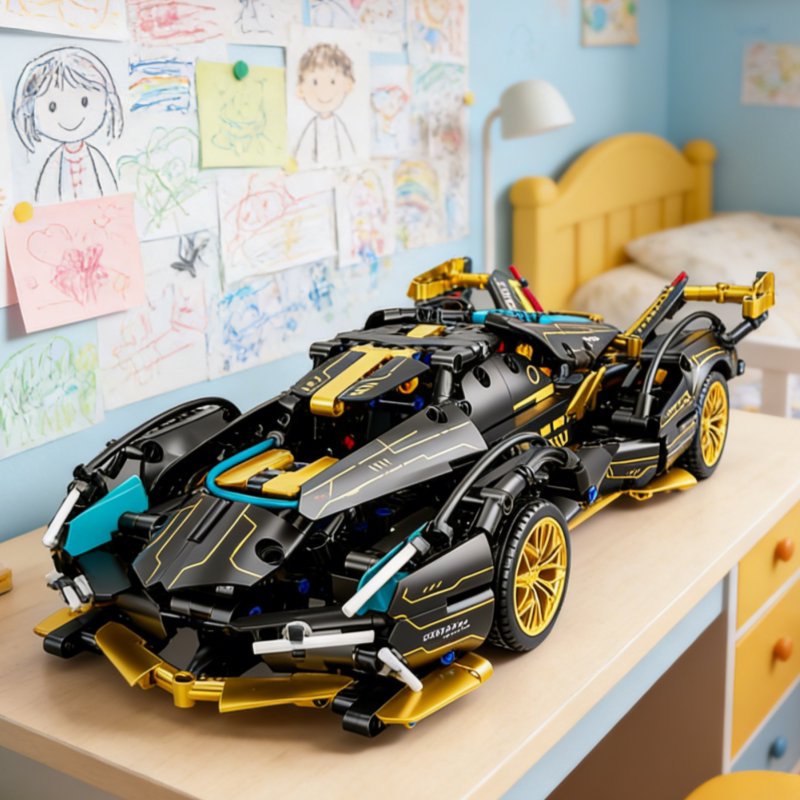 兼容乐高兰博积木基尼跑车模型遥控汽车男女孩拼装玩具机械组赛车