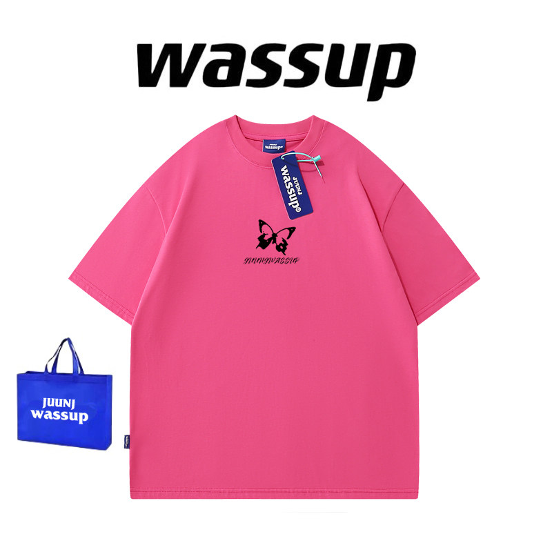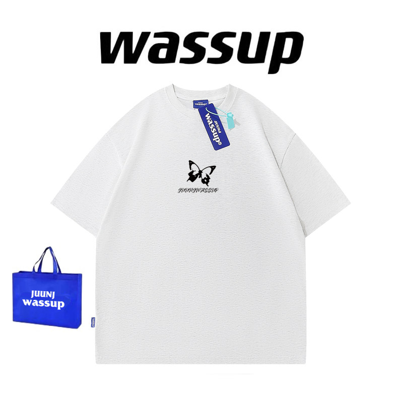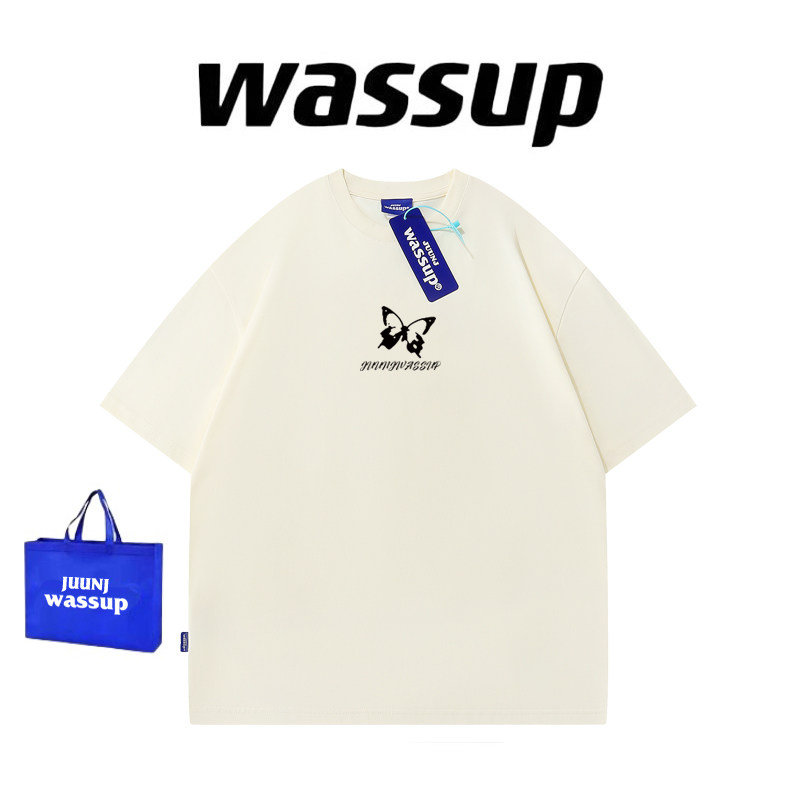 WASSUP国潮牌蝴蝶印花短袖男女夏季重磅纯棉潮流体恤情侣宽松半袖