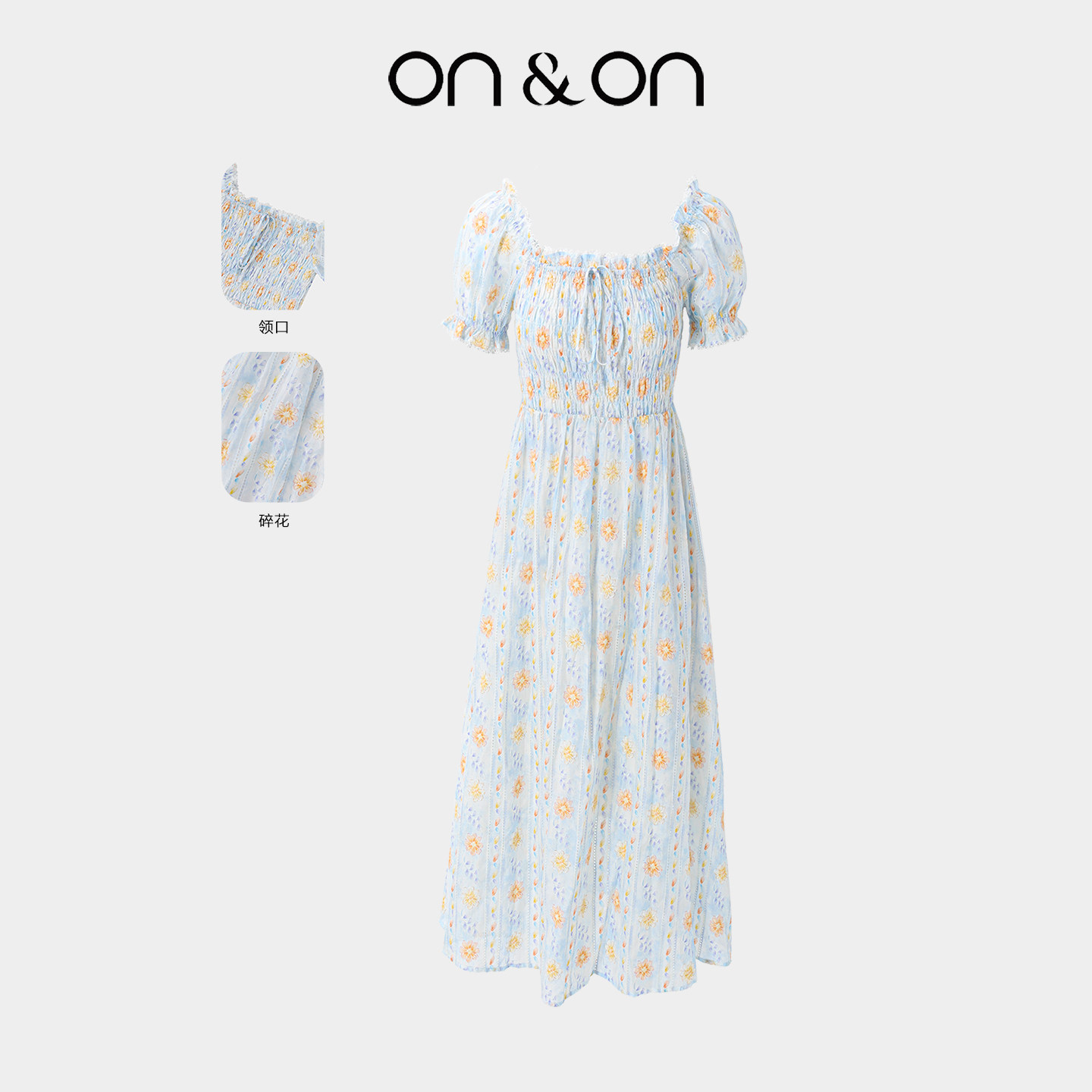 ON&ON/安乃安2025夏季新款法式方领收腰度假碎花小个子连衣裙女