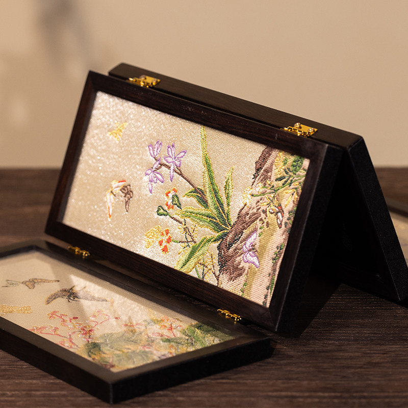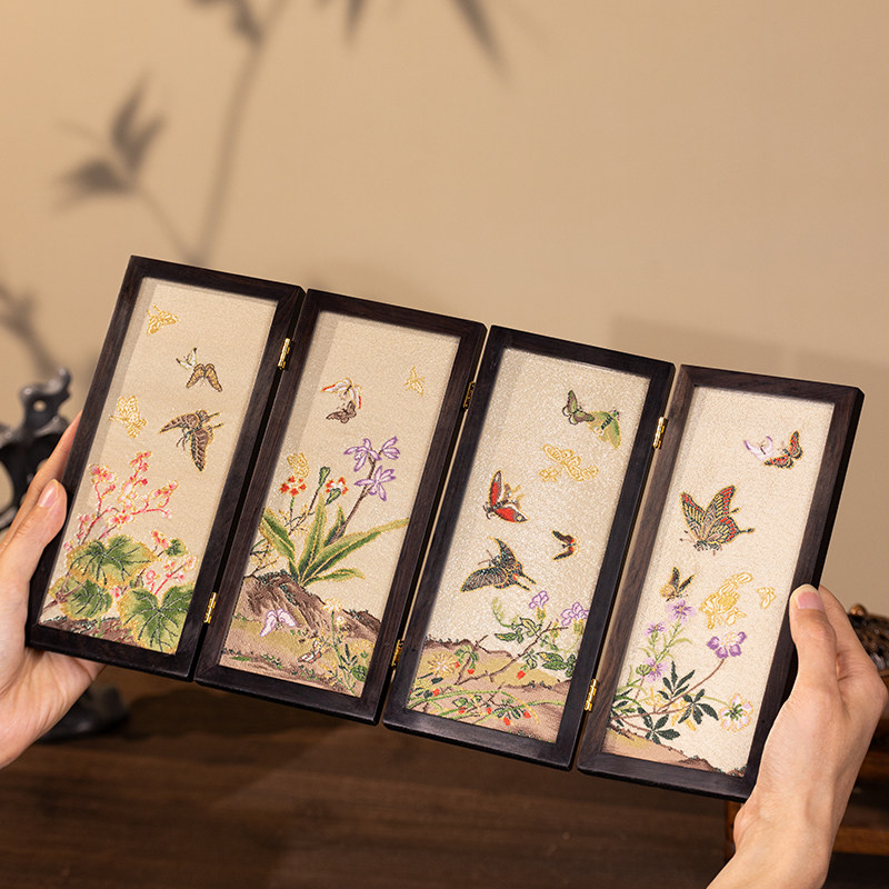 南京云锦 非遗手工 蝶舞翩翩 折叠桌面屏风