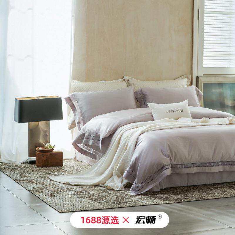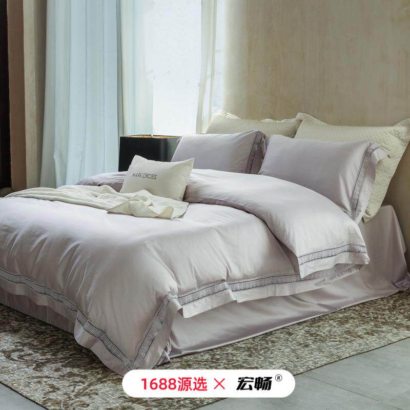 80支双股超细旦天丝棉四件套法式浪漫蕾丝花边长绒棉高端款套件