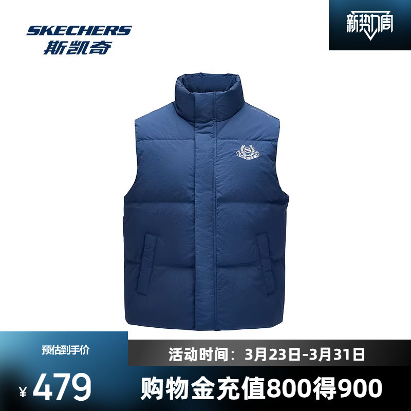 斯凯奇羽绒背心冬季男女同款立领无袖鸭绒宽松休闲运动保暖外套