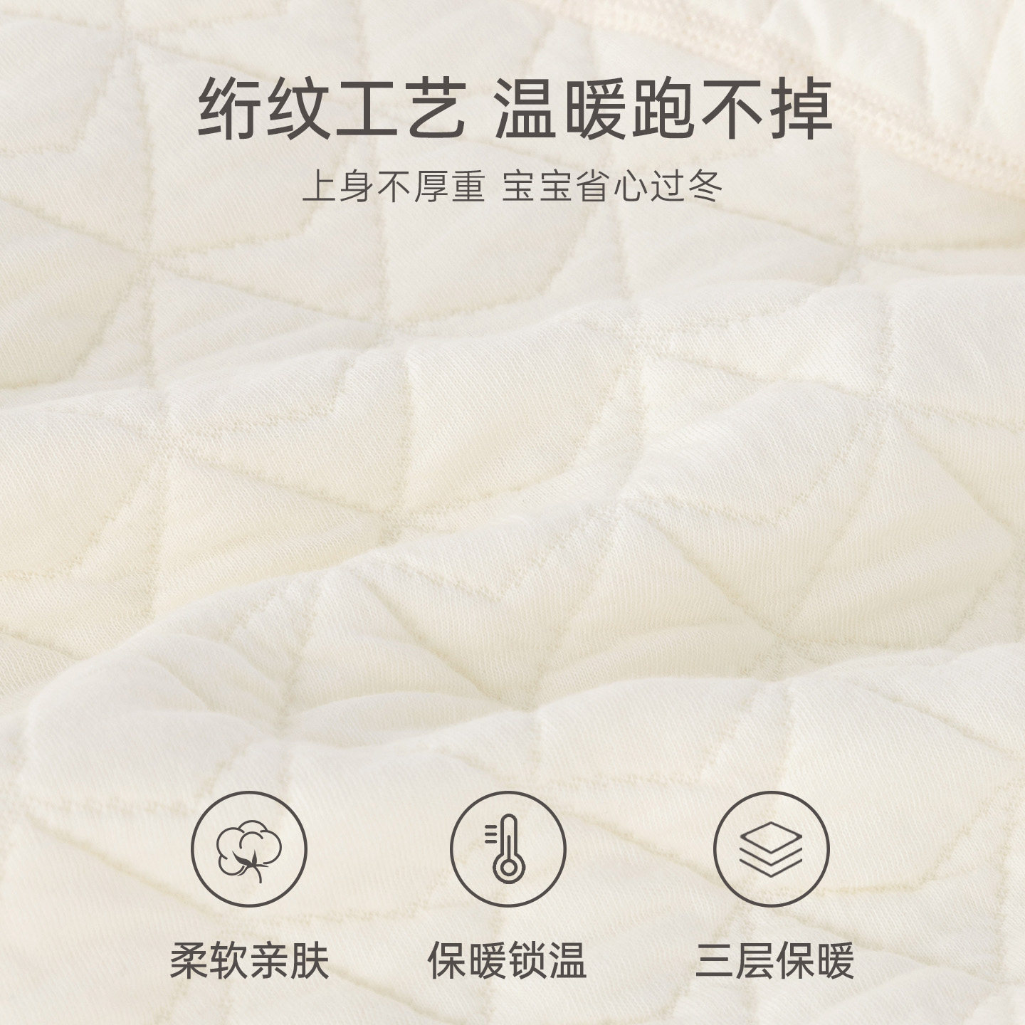 木生棉宝宝三层夹丝棉连体衣冬季婴儿保暖拉链哈衣居家爬服睡衣服