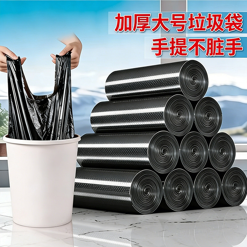 恒澍垃圾袋加厚厨房家用手提式背心式黑色湿垃圾塑料袋子大号特厚