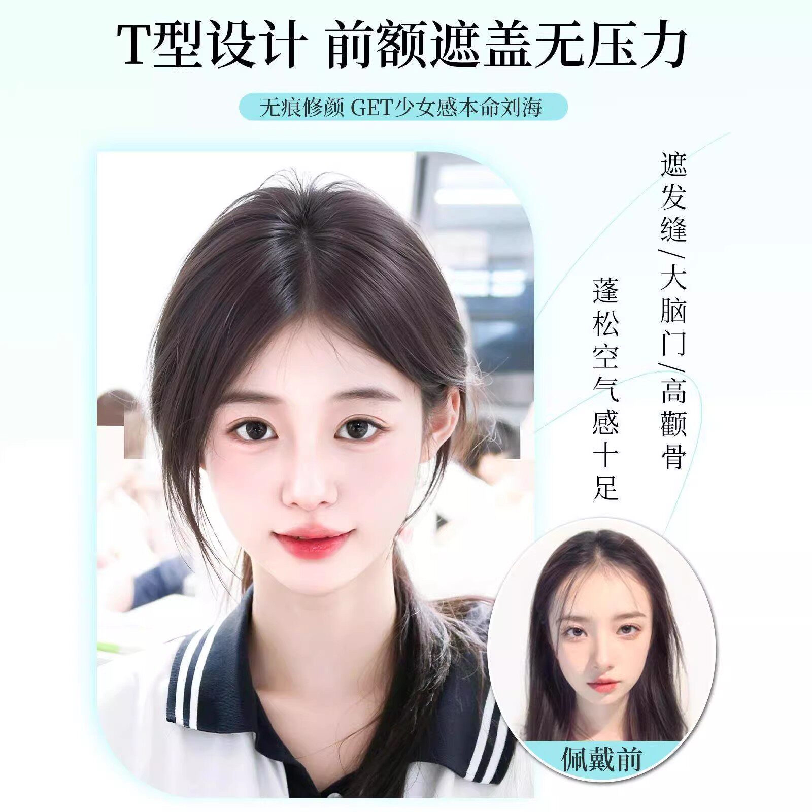 八字刘海假发女片头顶补发蓬松量仿真发无痕高颅顶假发片法式前额