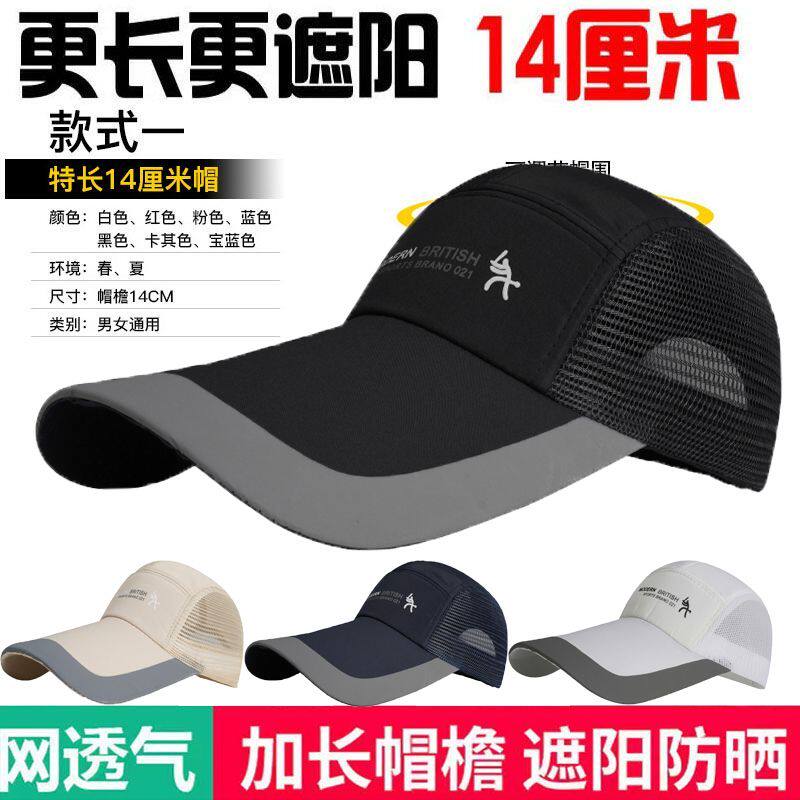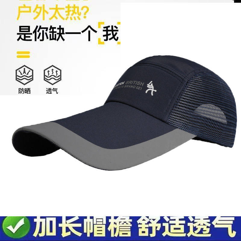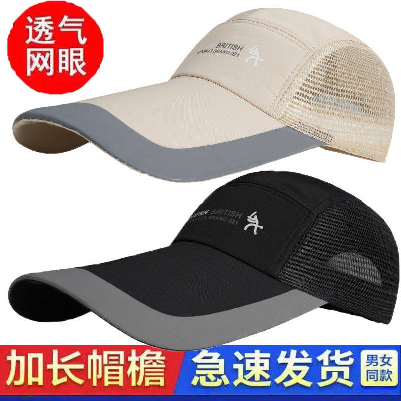 夏季透气网帽大头围棒球帽户外防晒帽子加长帽檐遮阳男黑色