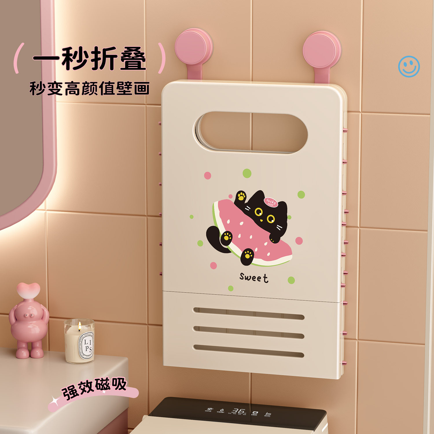 巴胺吸盘脏衣篮壁挂可折叠家用脏衣篓浴室洗衣篮卫生间衣服收纳筐