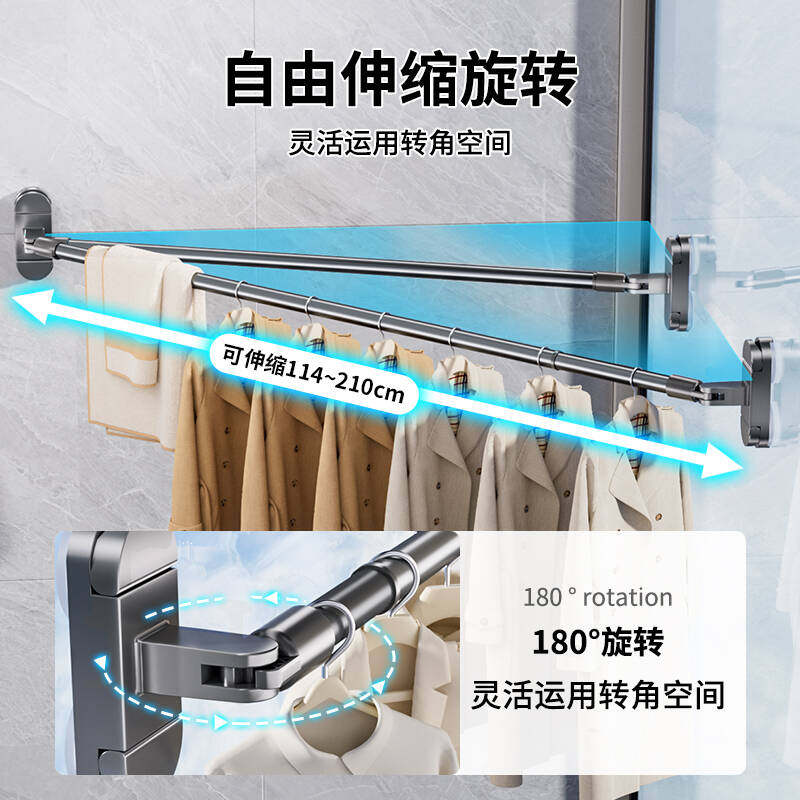 隐形折叠晾衣架免打孔晾衣杆落地伸缩不占地吸盘阳台侧面晾衣神器