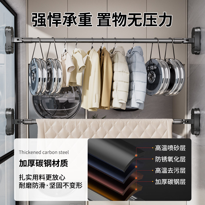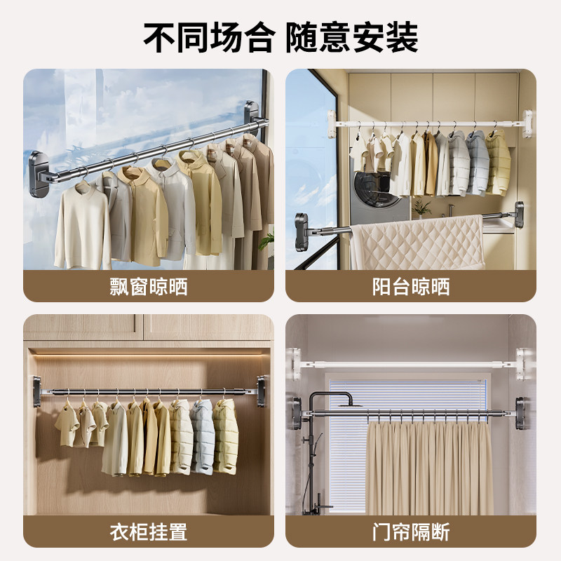 吸盘晾衣架伸缩晾衣杆家用免打孔窗户晒被子阳台空间利用晾衣神器