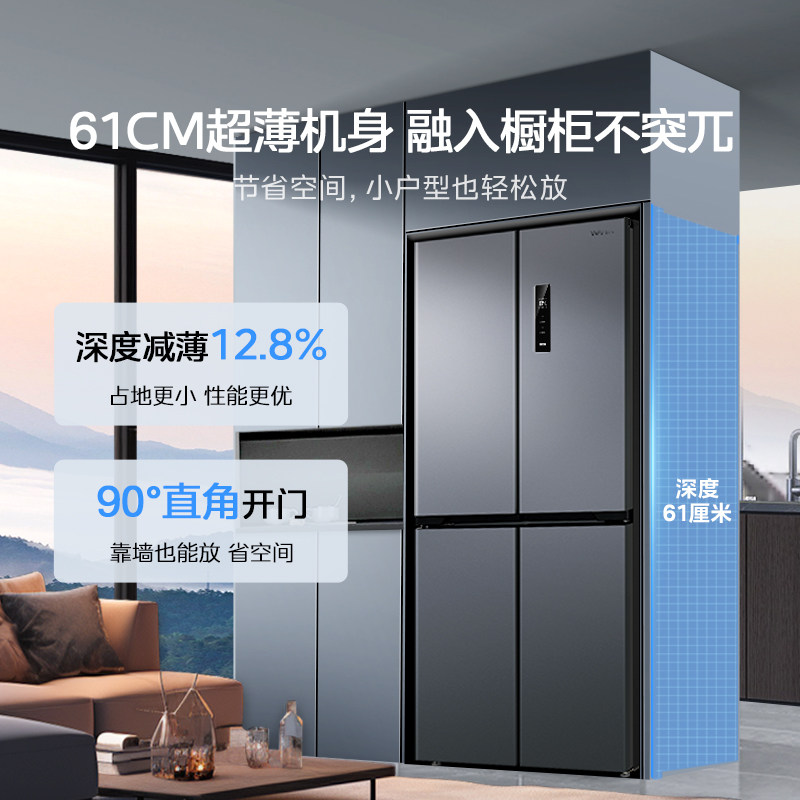 美的华凌神机547双系统超薄零嵌入式十字双开四门家用一级冰箱