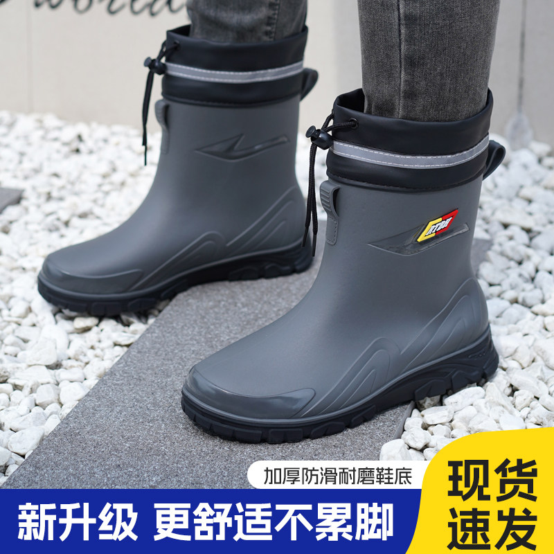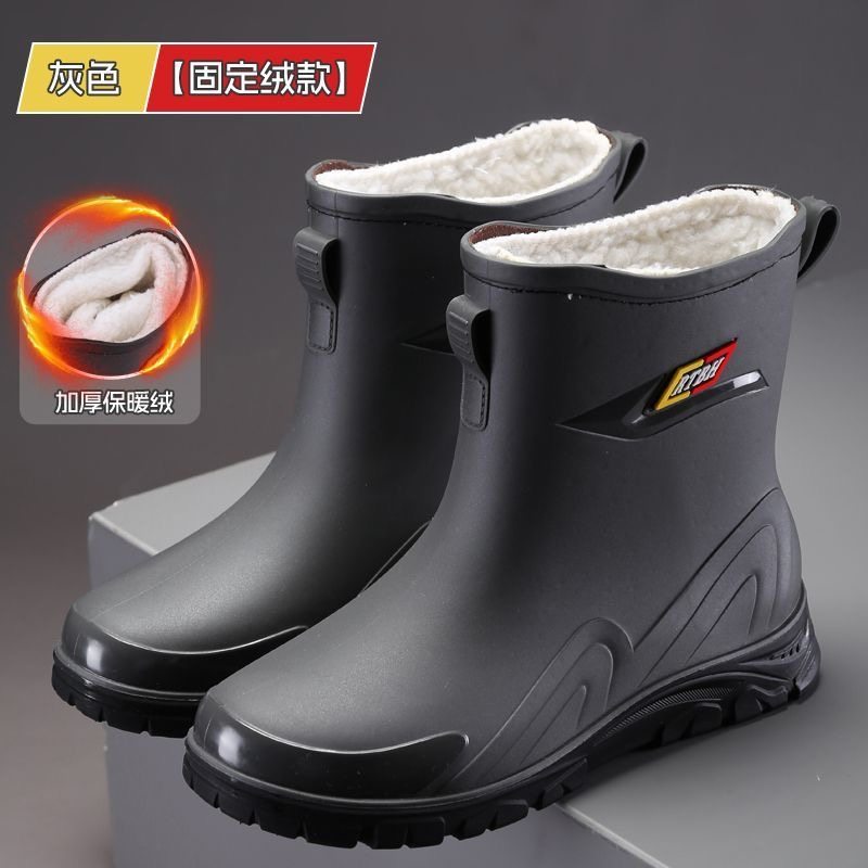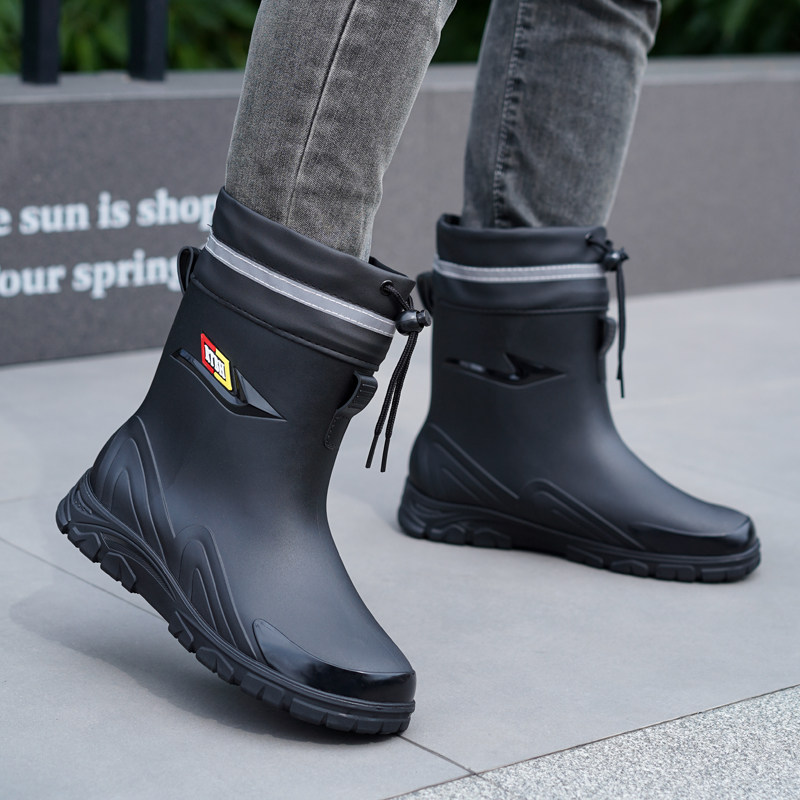 加厚保暖加绒雨鞋男款德系时尚户外耐磨厨房防滑防水骑手雨靴钓鱼