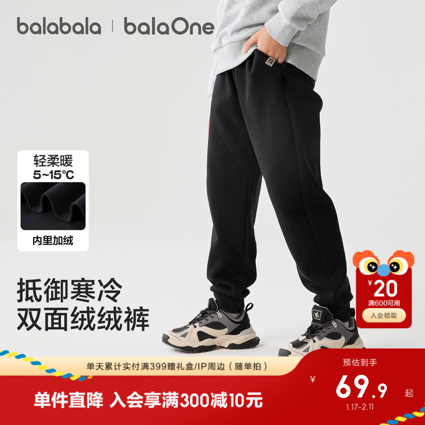 巴拉巴拉童装儿童加绒裤子女童2025秋冬装新款运动休闲保暖长裤甜