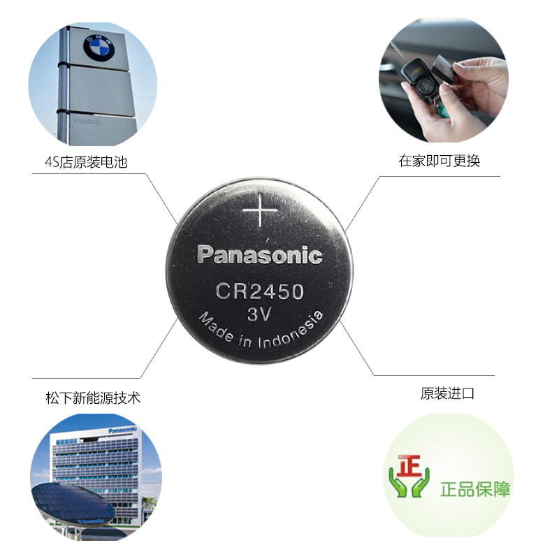 松下CR2450纽扣3V锂电池 宝马1357系汽车钥匙遥控器林肯MKC领航员