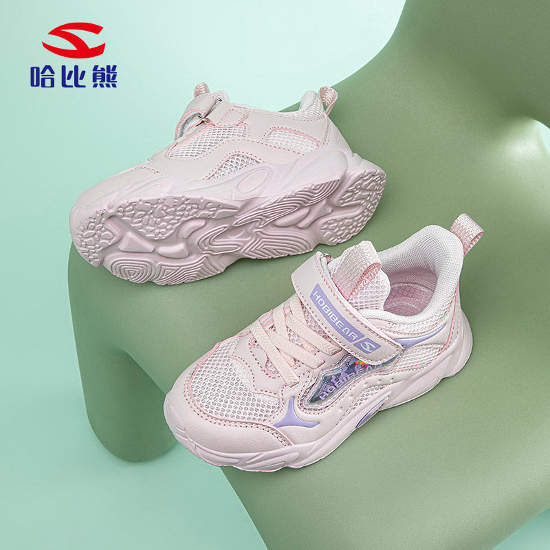 哈比熊儿童运动鞋女童跑步2025夏透气网鞋中大童女孩软底防滑轻便