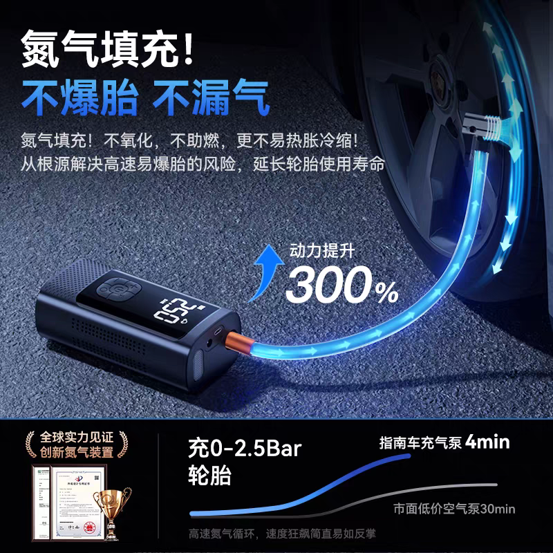 骑记25款N3车载充气泵车载打气泵胎压监测电动充气宝便携式打气筒