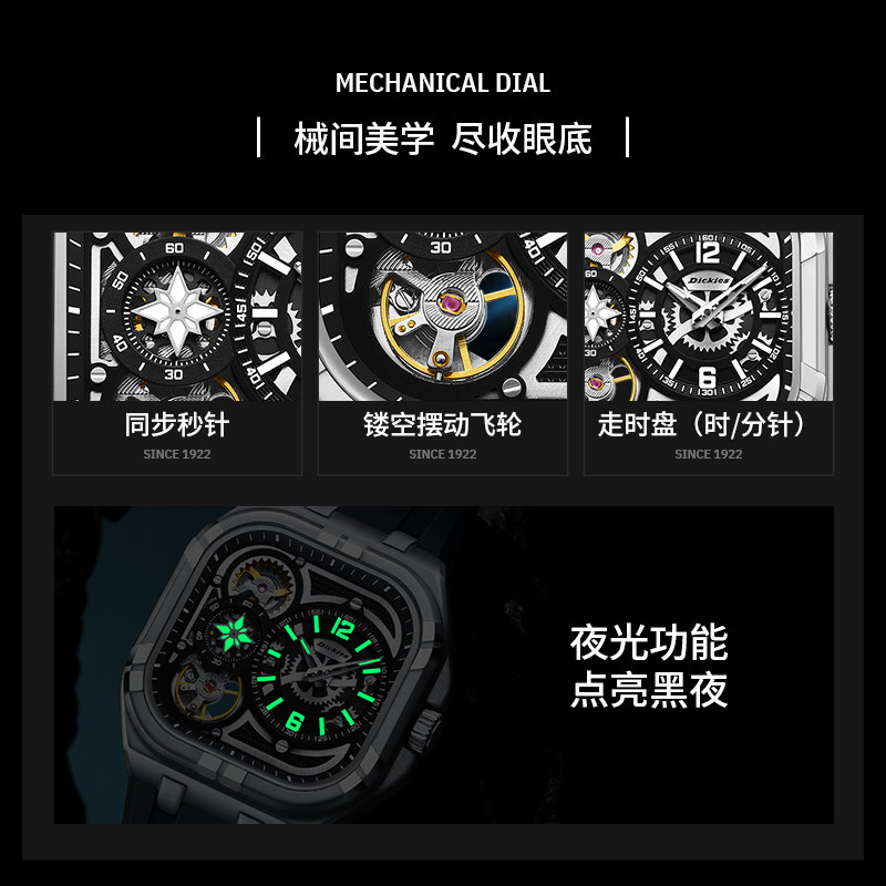 Dickies手表男士男款学生潮流时尚男生镂空机械风石英腕表夜光726