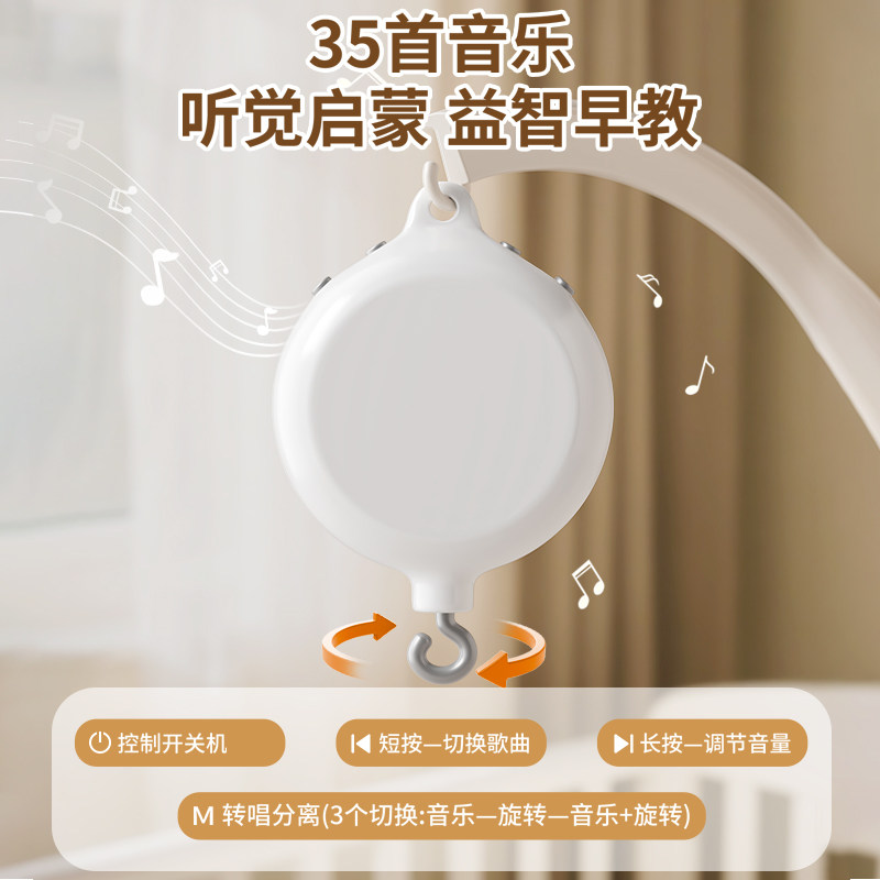 新生婴儿床铃0-1岁3-6个月宝宝玩具旋转床头摇铃车挂件悬挂式支架