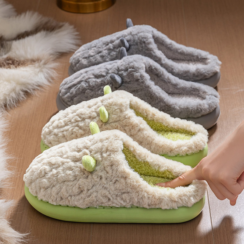 红豆踩屎感棉拖鞋女士秋冬季室内家居2025新款毛绒保暖情侣棉拖男