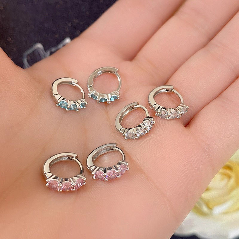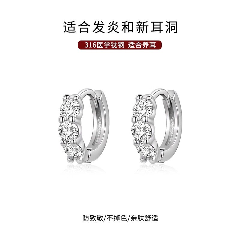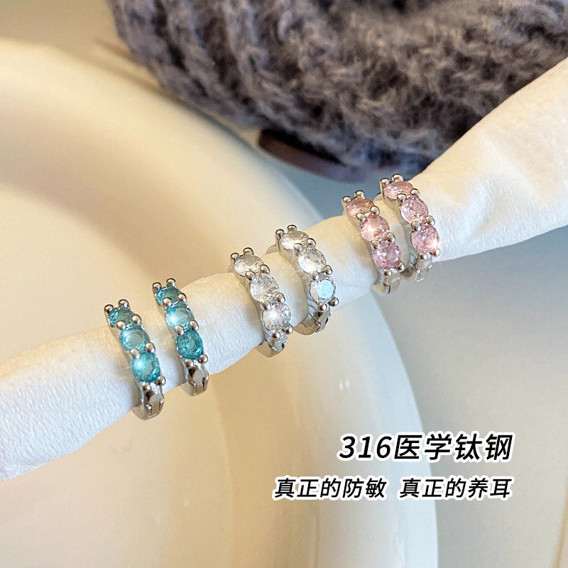 医用钛钢彩色锆石耳圈精致超闪素圈养耳洞耳环小众圈圈耳钉医学