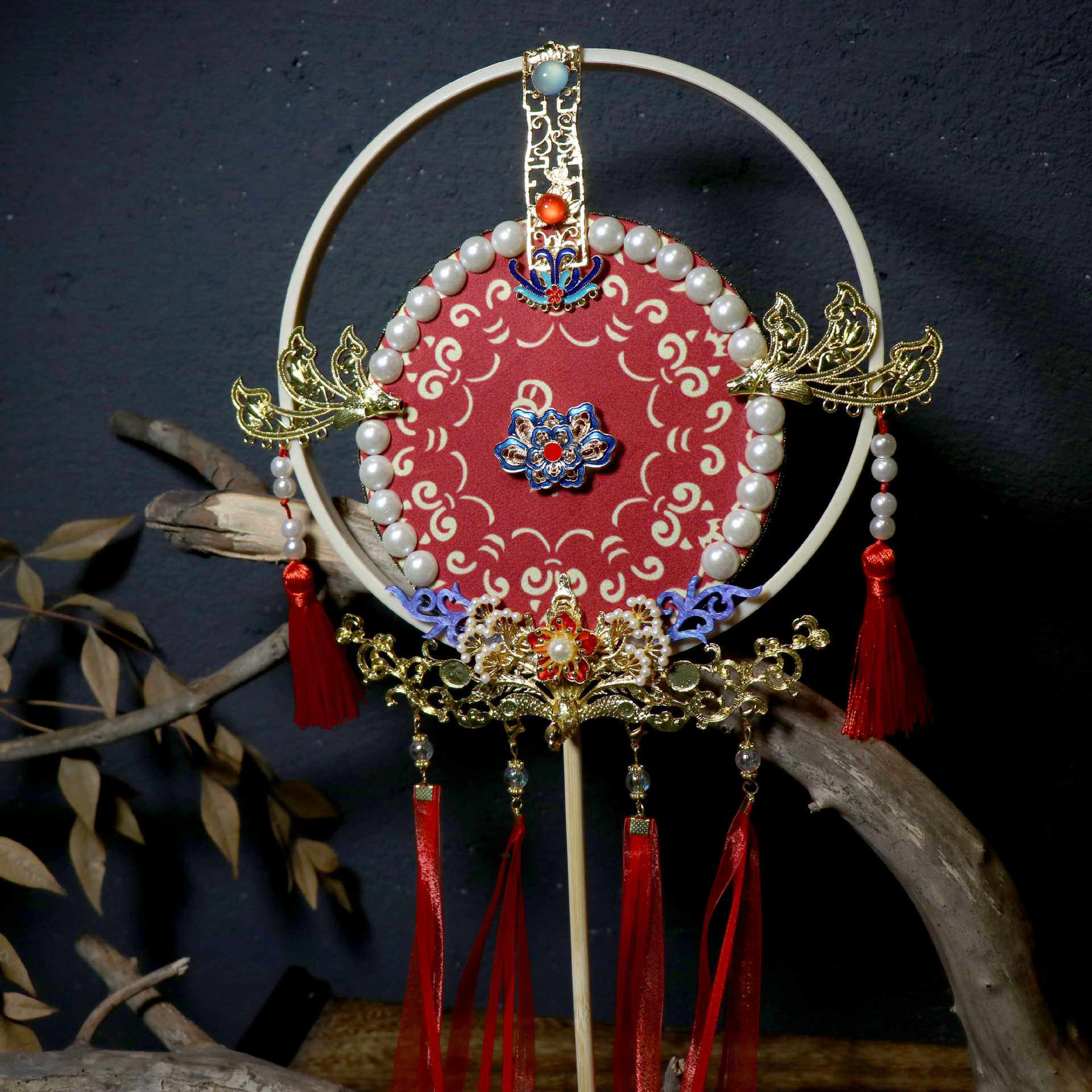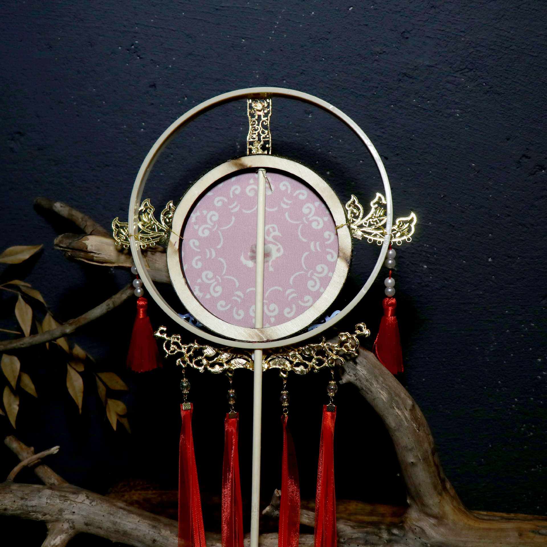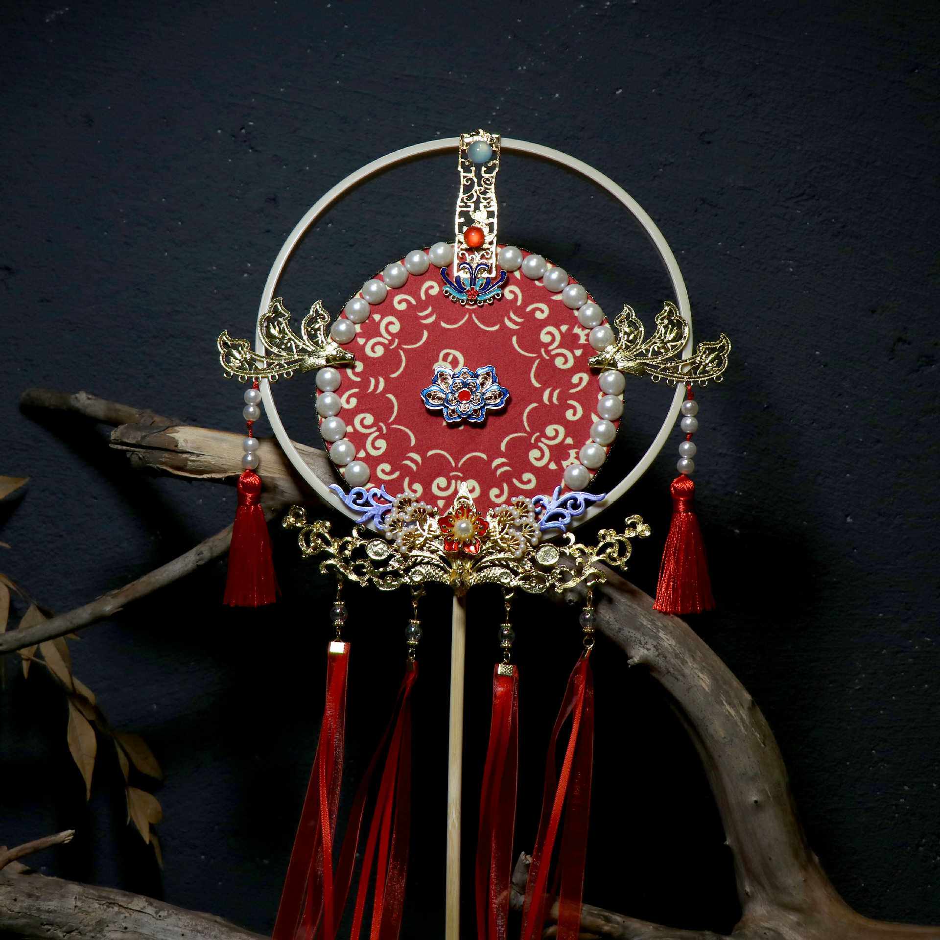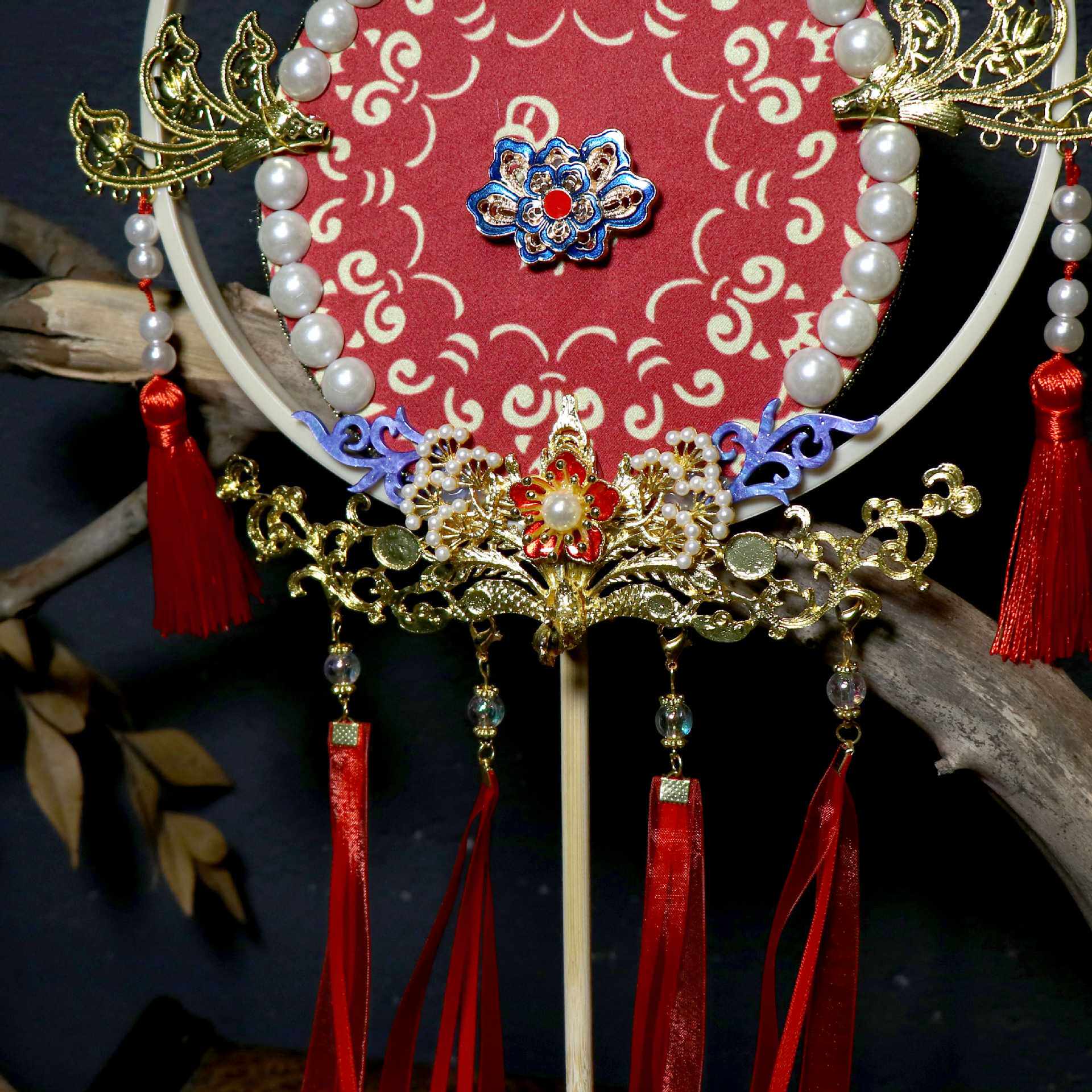贰玥新品团扇喜扇婚扇拍摄道具汉服饰品配饰大红扇子流苏【流霞】