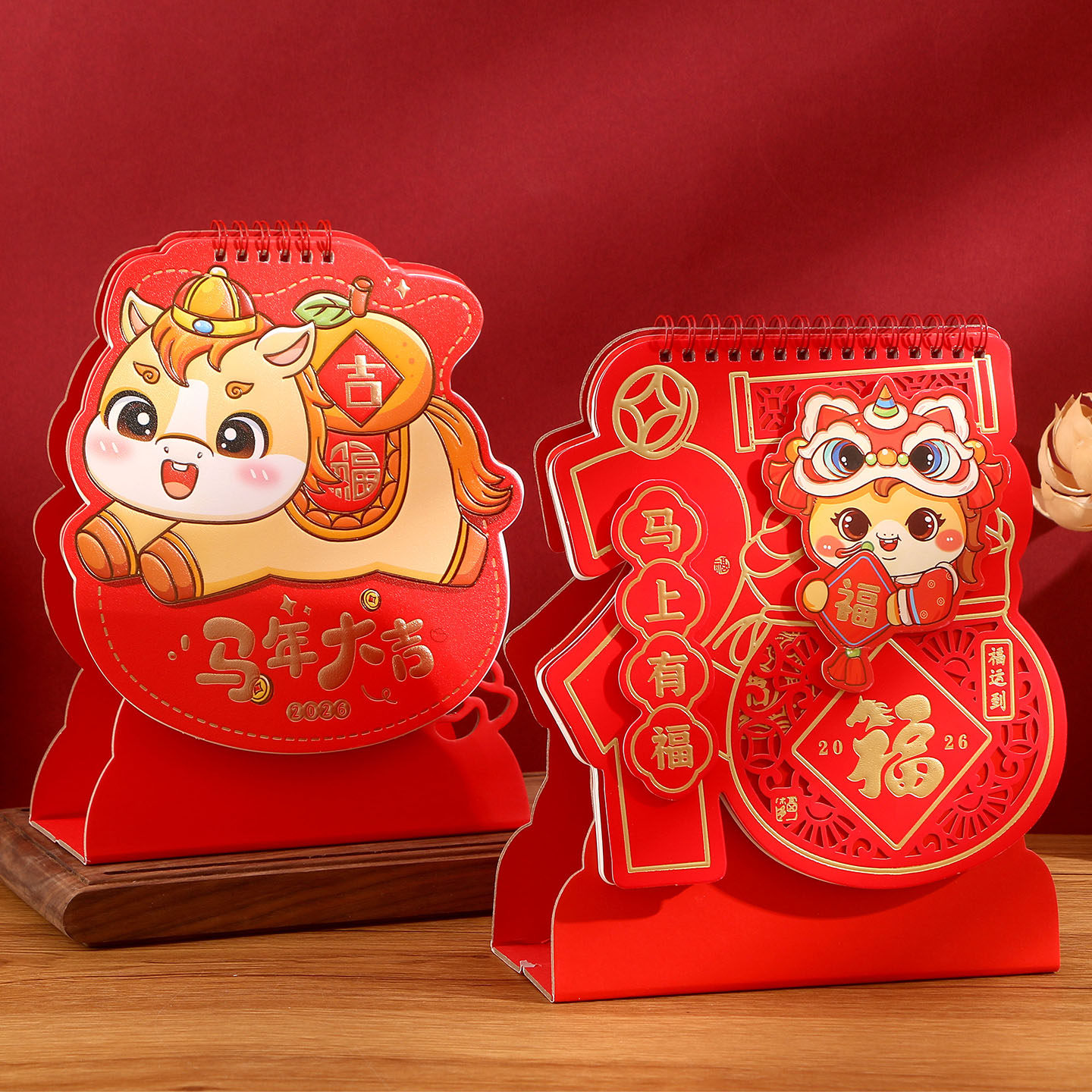 日历2026马年创意新年卡通台历异形可爱记事广告台历定制做LOGO办公计划本式月历桌面摆件简约小清新台历印刷