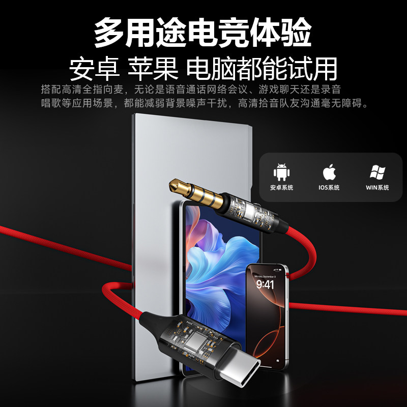 联想电竞有线耳机游戏专用三角洲降噪线控带麦平板圆孔typec电脑