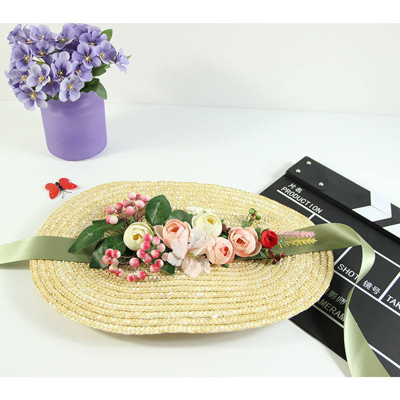 新款田园风婚纱摄影道具影楼外景拍照写真主题时尚创意粘花草帽